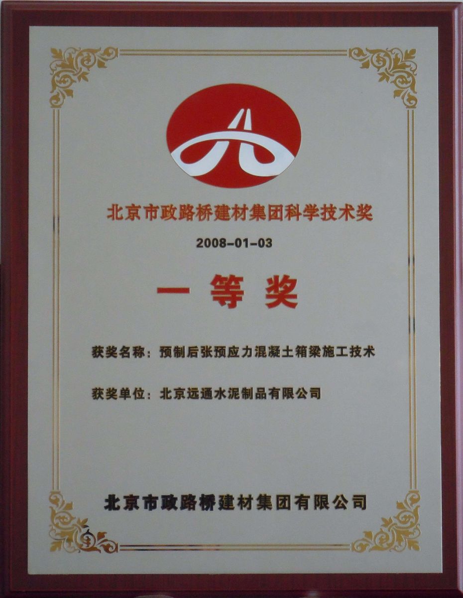预制后张预应力混凝土箱梁施工技术科学技术奖一等奖