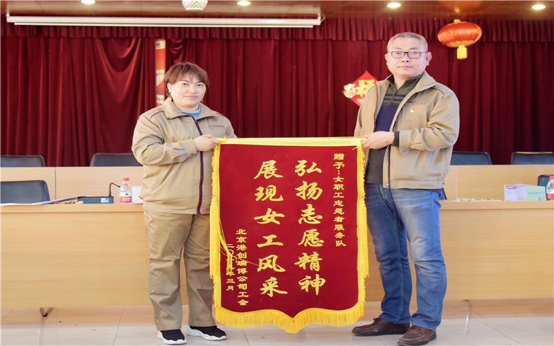 活动现场,杨寒冰代表公司党总支向在文明企业创建活动中做出突出贡献的女职工志愿者服务队授予了锦旗;向技术质量部资料室颁发了“巾帼文明办公室”奖牌。并向为节日期间放弃休假坚守岗位的女职工赠送慰问品。