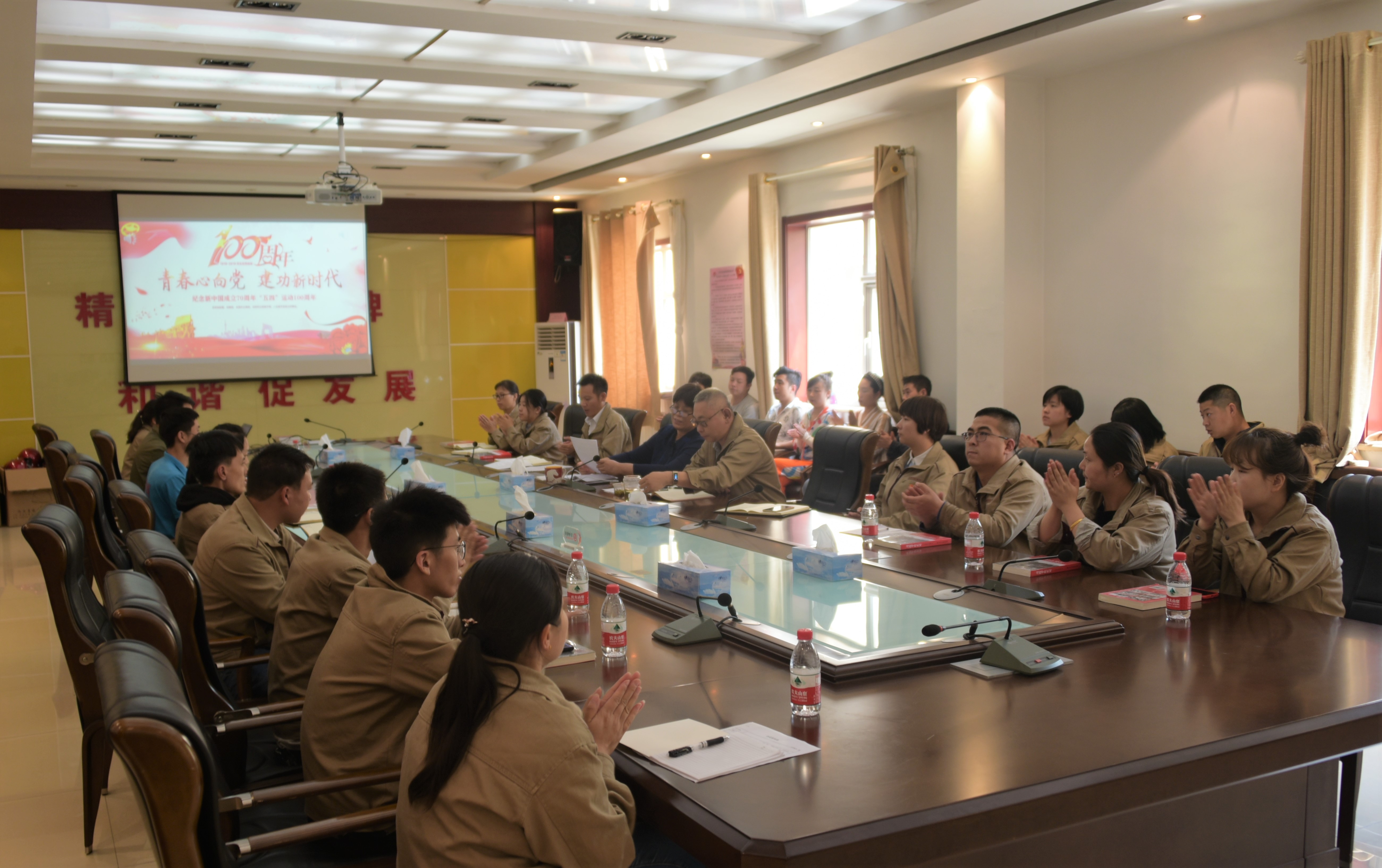 5月5日下午,公司党总支书记李秀梅、总经理杨寒冰与团员青年共聚一堂,同唱国歌,一起观看了“致敬奋斗中的中国青年”短视频,对“优秀青年突击队”进行了表彰,向公司团员青年赠送了《习近平在正定》书籍。随后,围绕“青春心向党 建功新时代”主题,公司领导与团员青年们进行了亲切的座谈与交流,勉励大家立足本职岗位,加强自我锤炼,不断提高工作能力,在本职工作中实现青春价值。以青春之我、奋斗之我,为民族复兴铺路架桥,为祖国建设添砖加瓦,为实现中国梦注入磅礴的青春力量。
