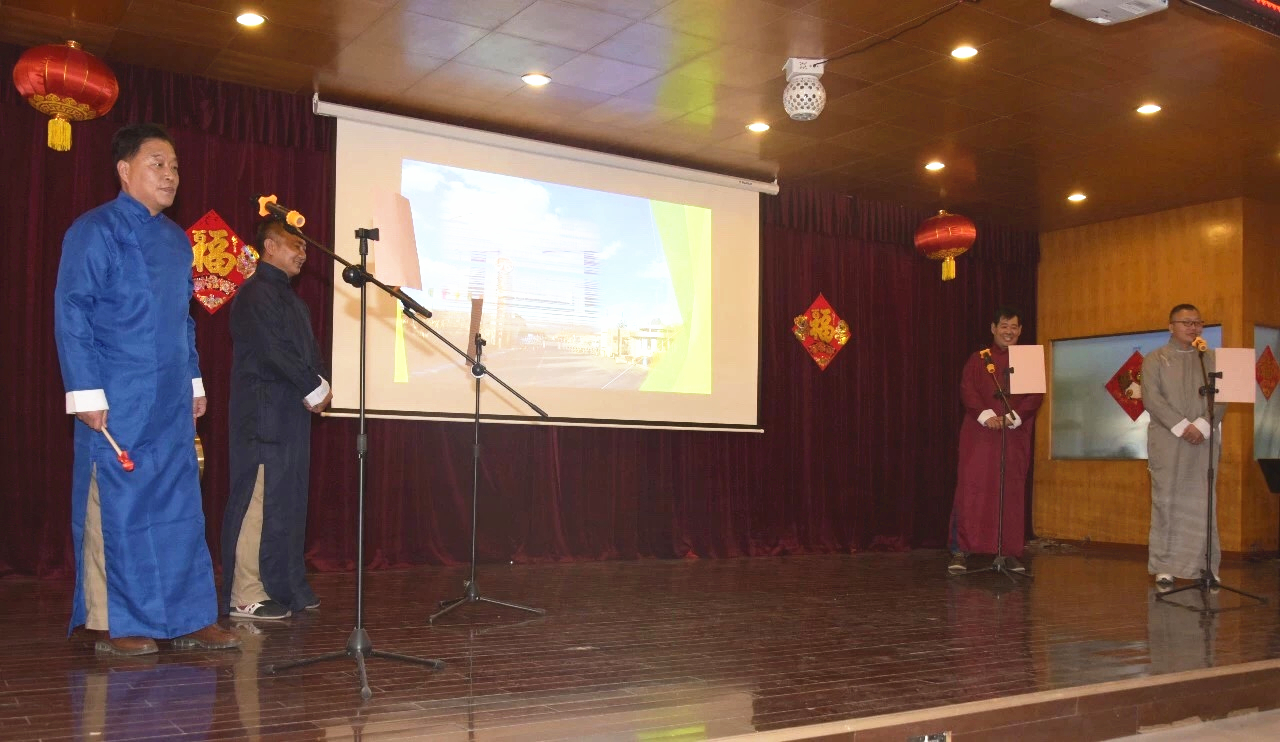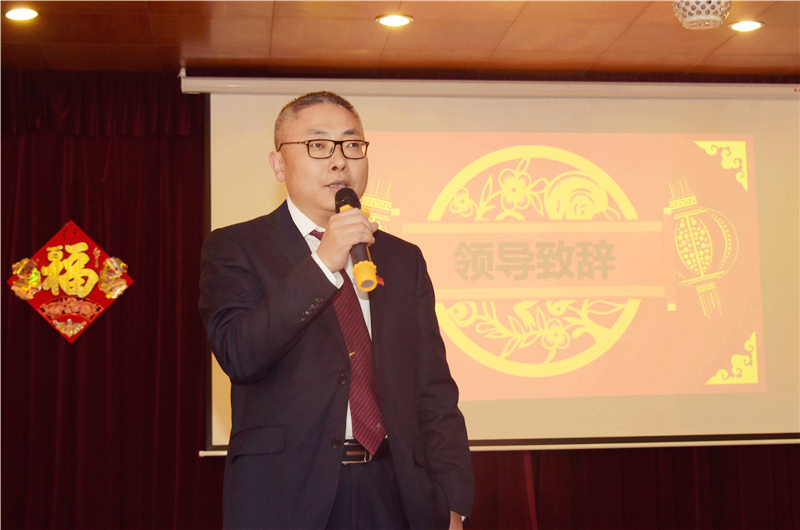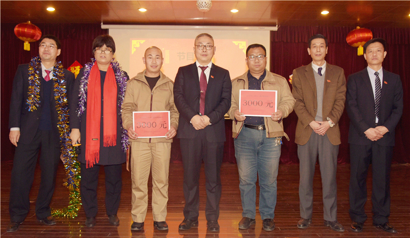 演出前,公司总经理杨寒冰代表公司领导班子作了热情洋溢的新春致辞,他说:岁月不居,天道酬勤。过去的一年里,我们共同拼搏,尽管道路坎坷,尽管困难重重,但却成绩辉煌!新的一年又至,更需职工努力,携手再创奇迹!之后,公司领导班子给全体职工送去了新年的祝福。