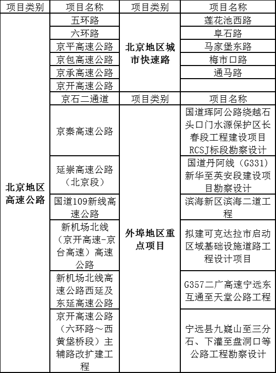 设计院自成立至今,完成不同等级的公路、城市道路勘察设计3000多公里,大中桥梁1000多座,隧道40多座,其中典型项目有: