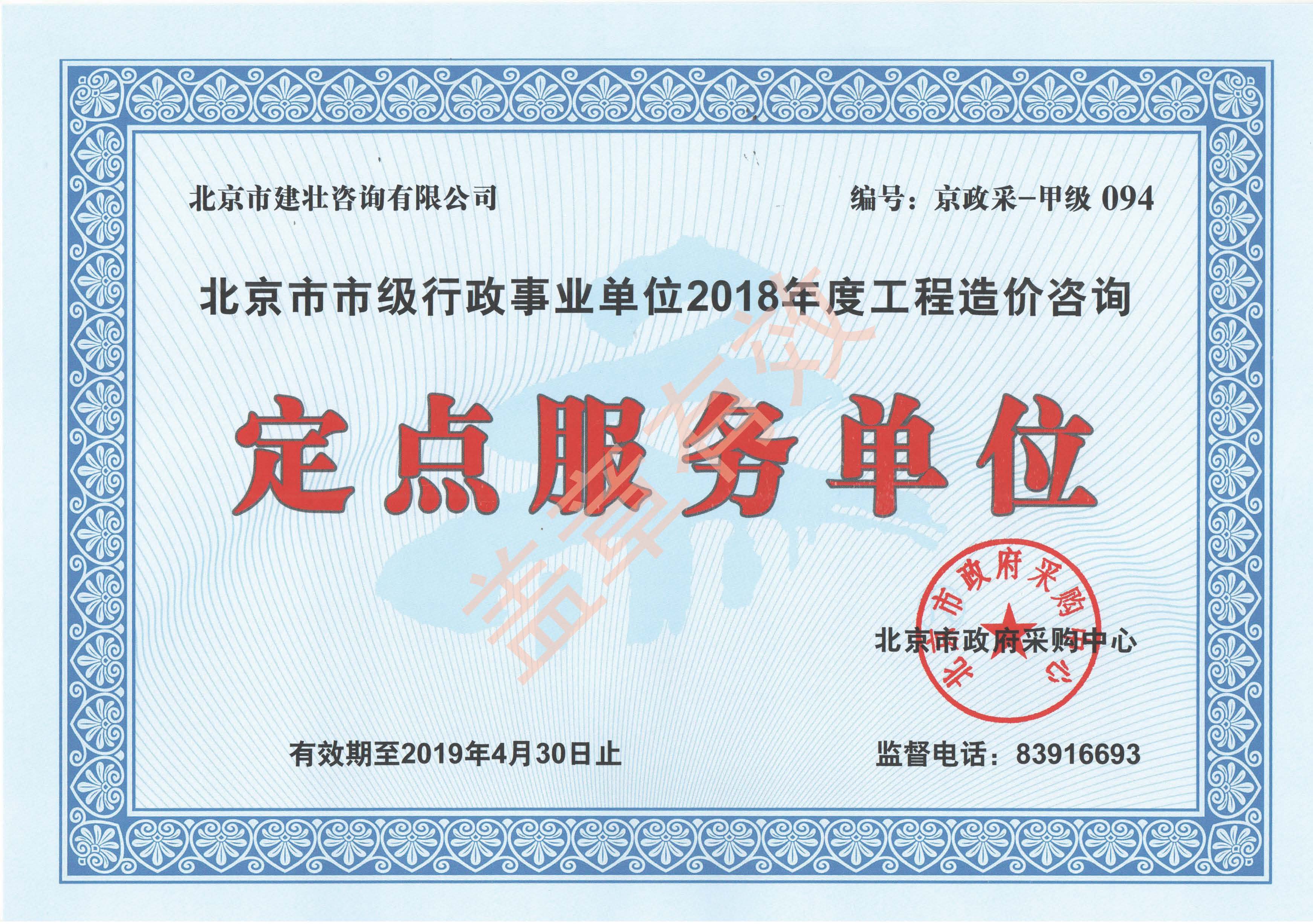 北京市市级行政事业单位2018年度工程造价咨询定点服务单位