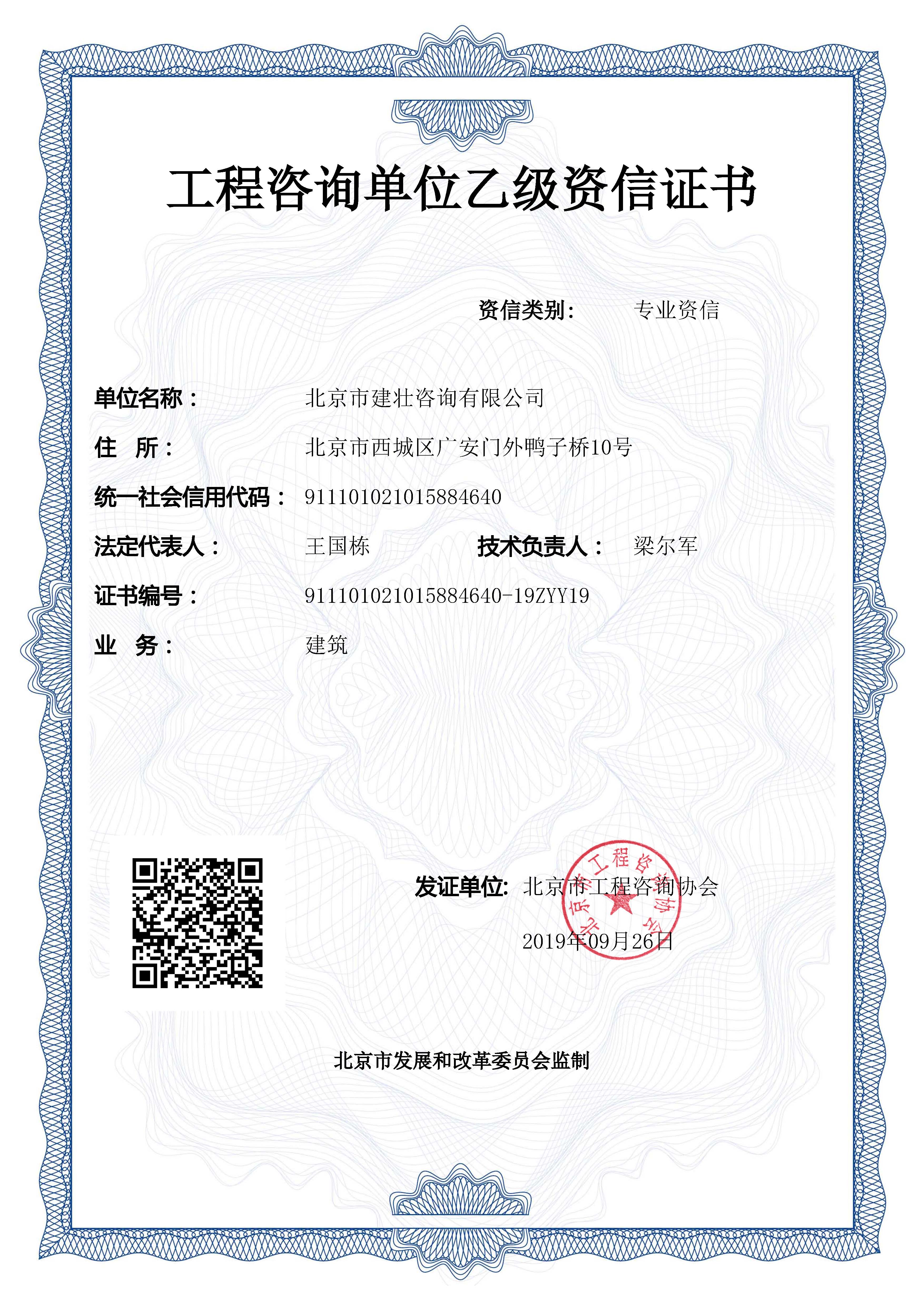 工程咨询单位乙级资信评价证书