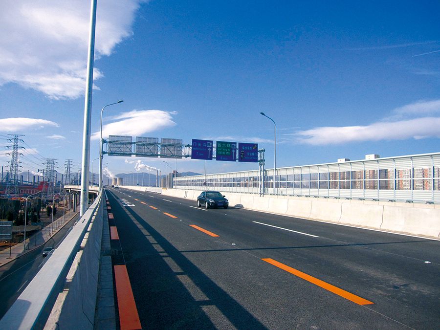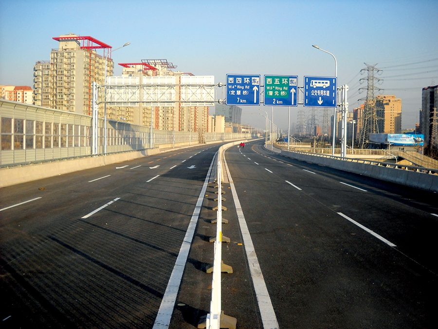 阜石路(双峪环岛~西五环路)改建工程天桥与主线高架桥相接处分别为主线高架桥轴中线对应,快速公交杨庄东口站天桥工程,延轴中线处设置人行梯道3座,设置无障碍坡道1座。