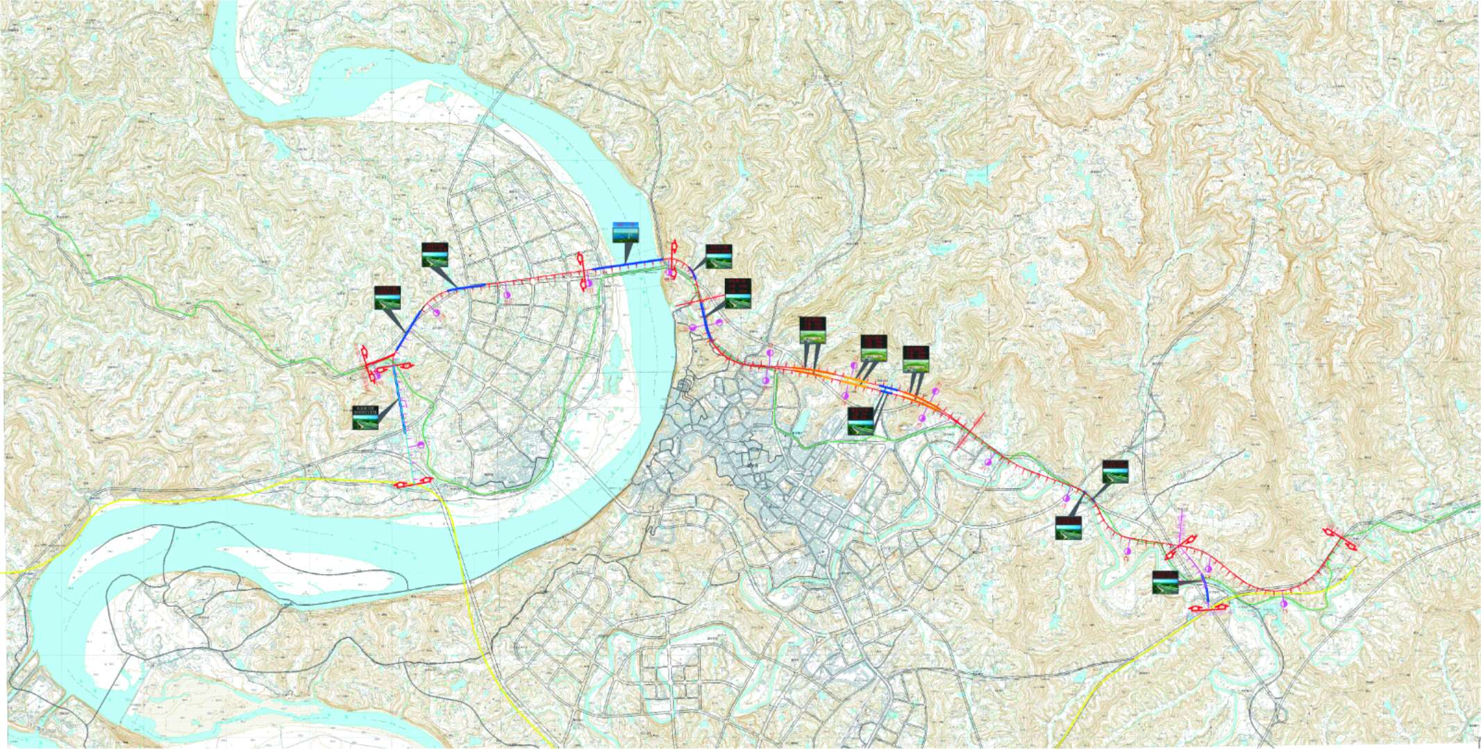 蓬安县绕城北路工程位于四川省南充市蓬安县,道路全长9.08km,双向六车道,一级公路标准,设计速度为80km/h,红线宽32米,合同金额为6.6亿元(此金额不包括新建嘉陵江一桥工程)。项目采用PPP合作方式。本工程施工项目包括道路工程、桥梁工程、隧道工程和市政综合管线工程等。