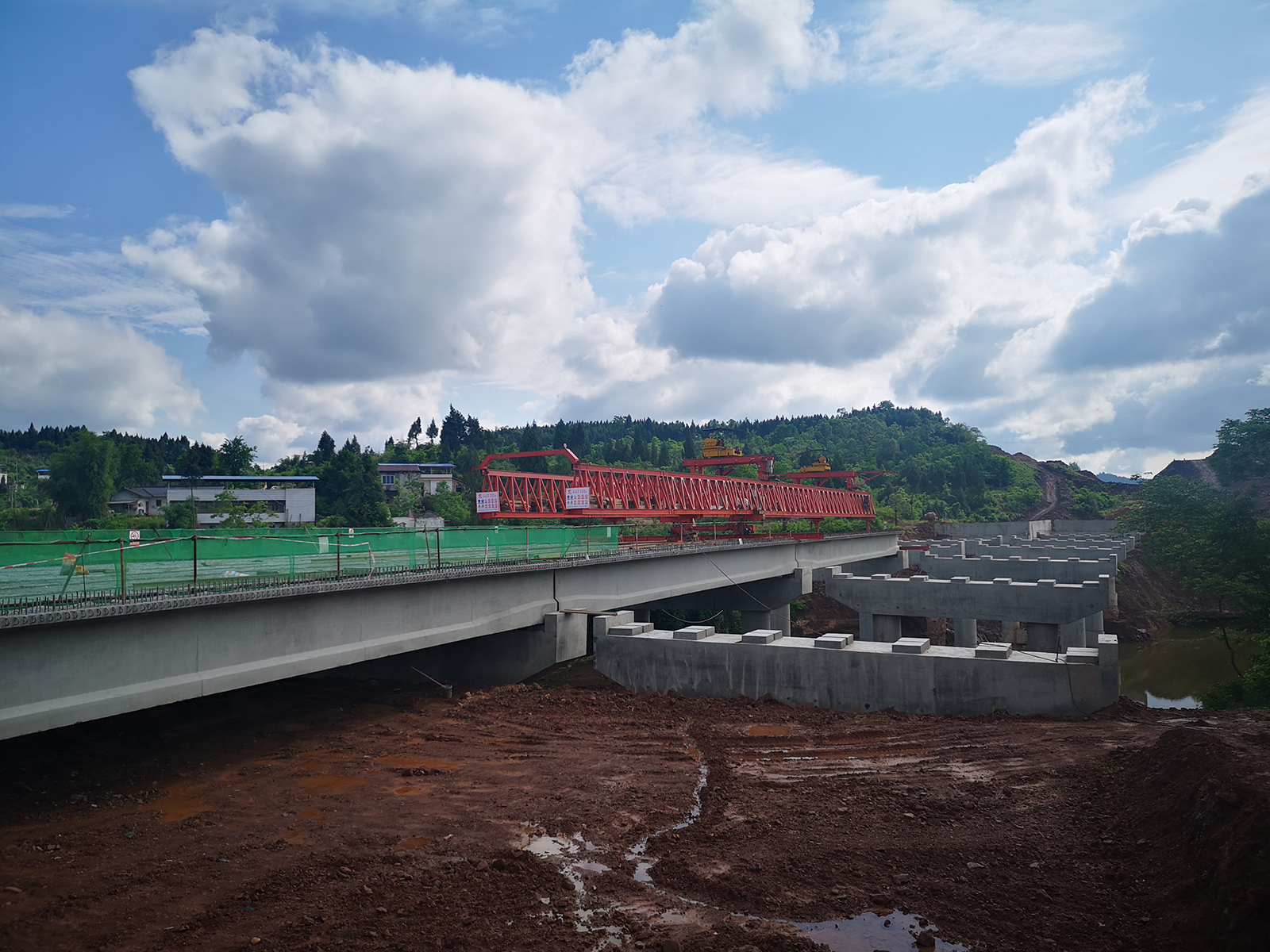 盐井坝大桥下部结构和T梁安装全部完成,正在进行防撞护栏施工,已完成520米,占总量的47.1%; 花园沟大桥下部结构全部完成,T梁安装完成17片,占总量的18.7%; 彭家沟大桥完成桩基28棵,占总量的58%;高屋基隧道左线430米全线贯通,右线完成438米,占总量的90.3%; 黄家湾隧道正在进行出口处大管棚施工; 路基工程完成土石方开挖180万方,占总量的60%; 嘉陵江一桥西岸钢栈桥全部施工完成。施工平台完成1200平米,东岸筑岛围堰已完成,咬合桩完成12棵,占总量的6.4%。
