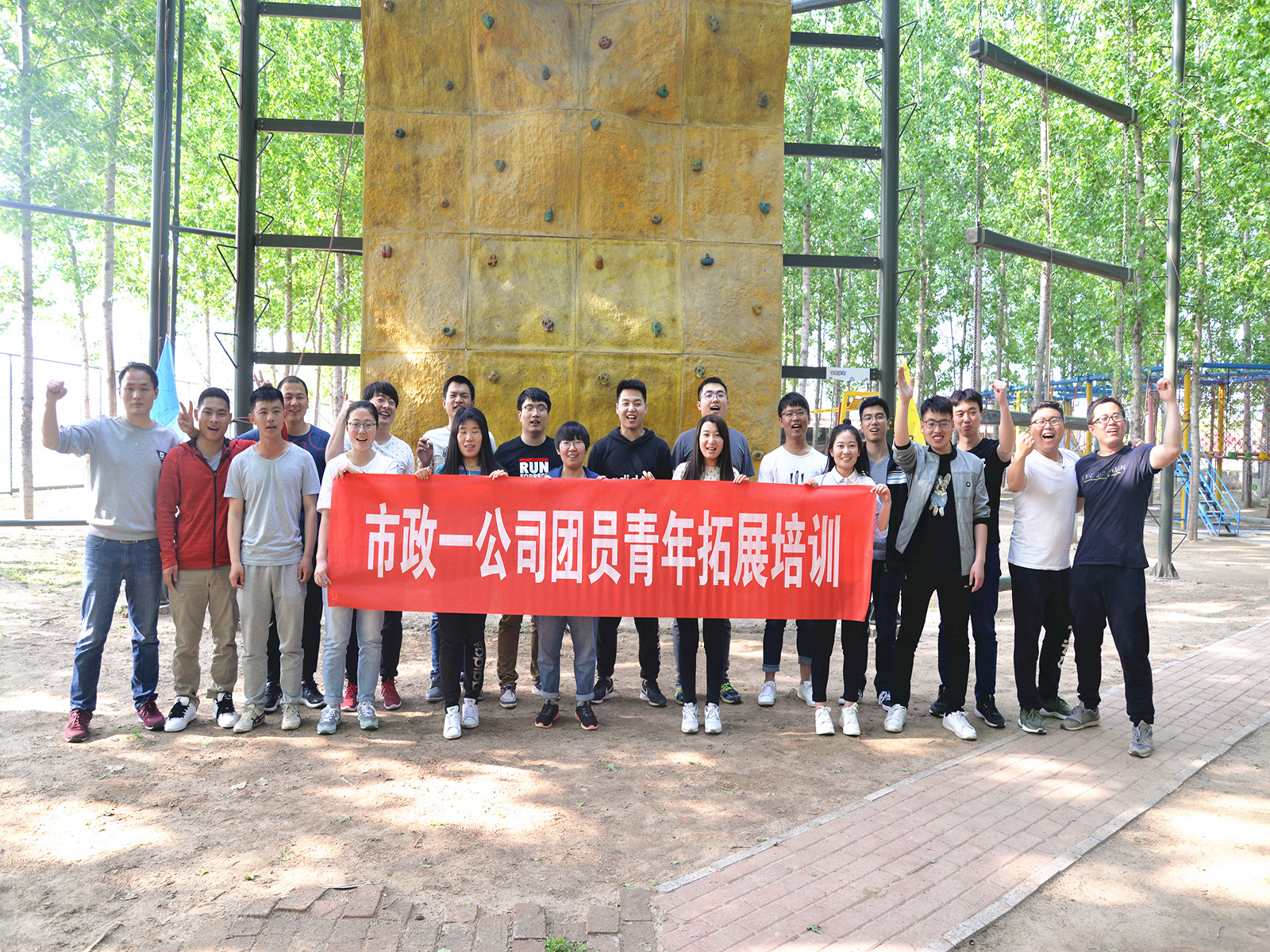 公司重点工程运河东大街工地参观,然后进行了拓展培训。