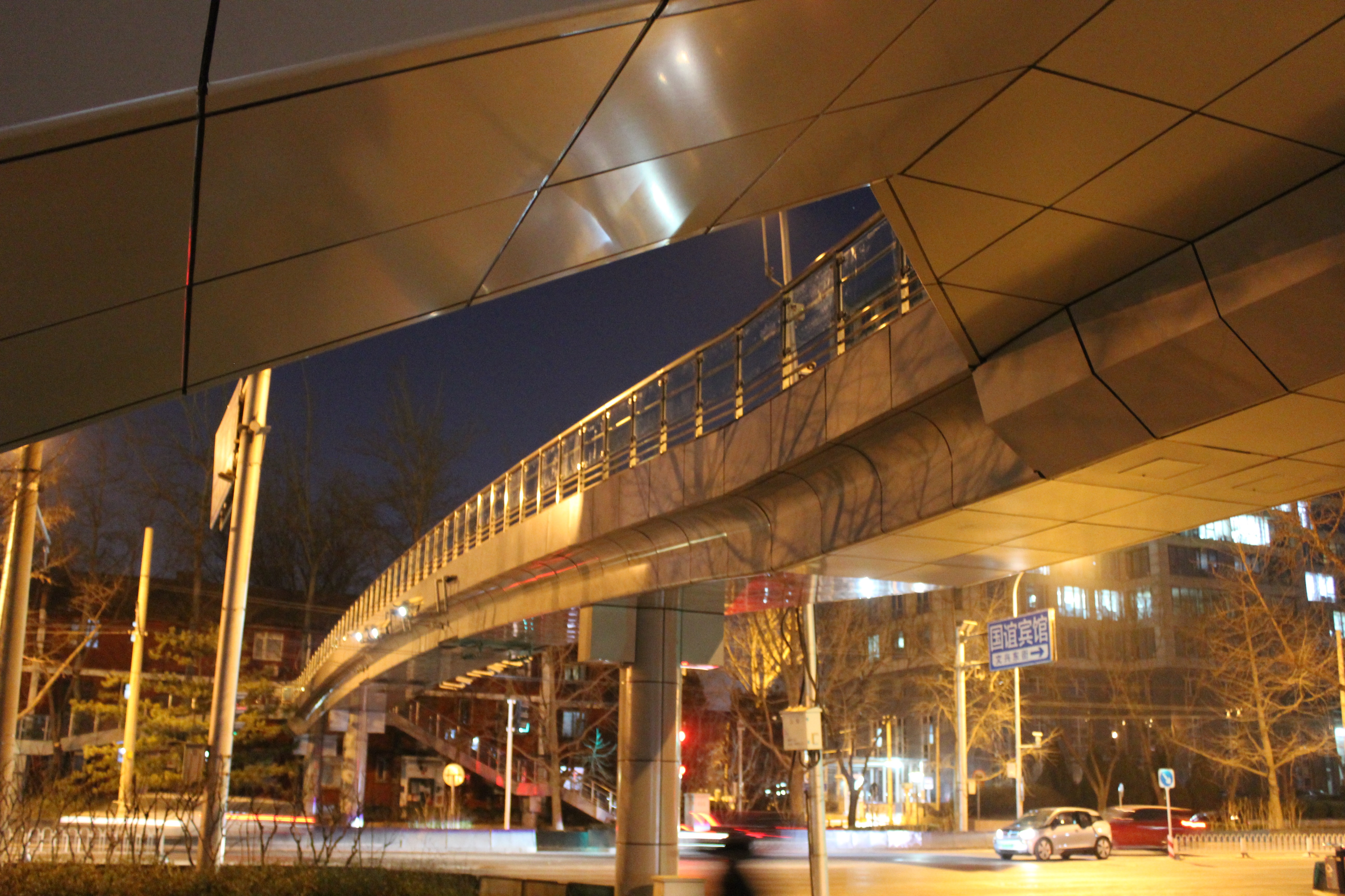 历经80天的日夜奋斗,天桥旧貌换新颜,过年穿新衣,所有钢结构全部重新打磨刷漆,外挂3mm厚铝板,旧有复核栏杆换成不锈钢+钢化玻璃栏杆,夜间七彩LED照明灯带为进入新年的北京夜空增加一份绚丽的色彩。