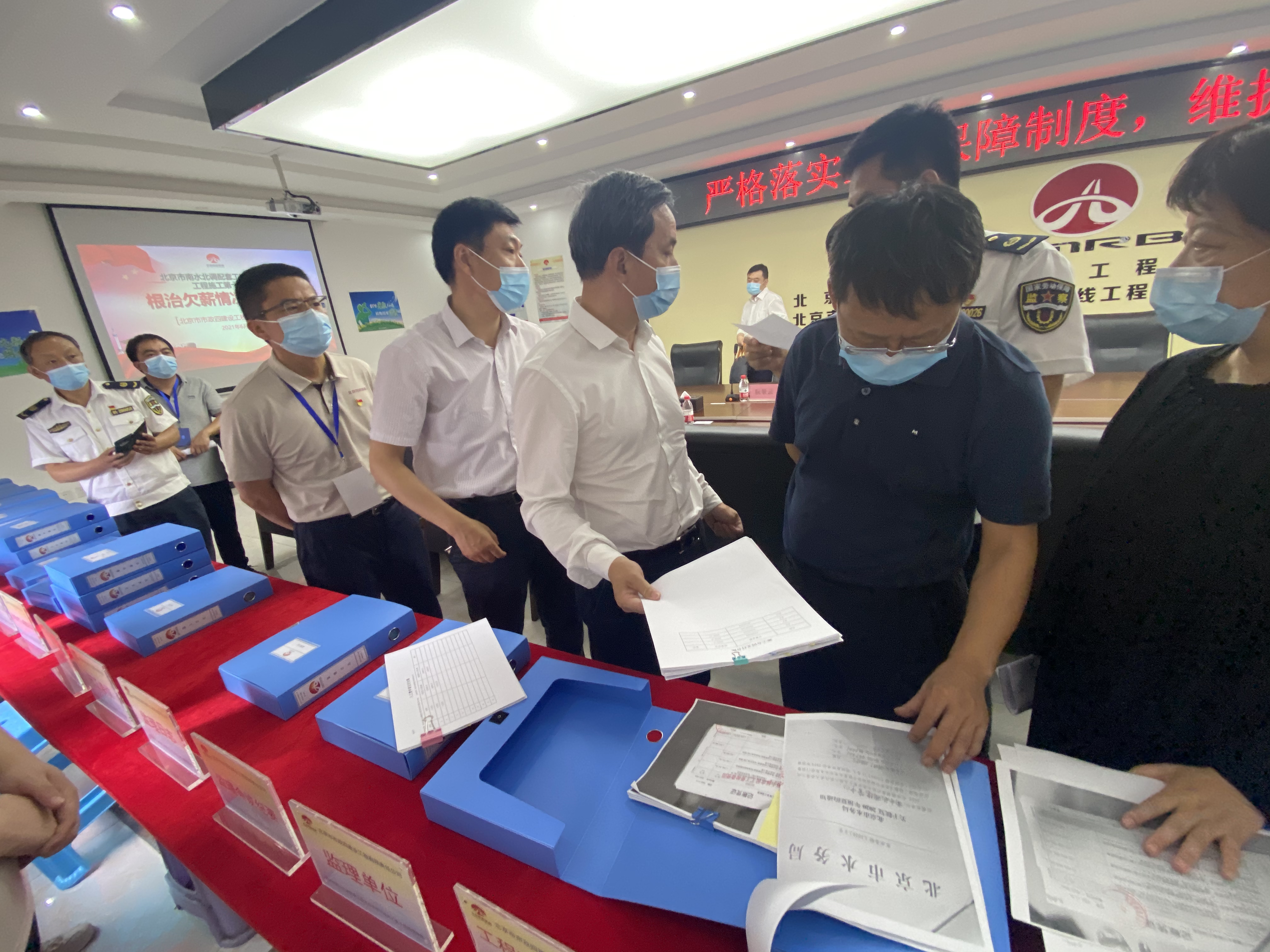 检查结束后,滕家胜、陈建华组织召开了现场部署会,落实了市长指示精神,根据检查过程的细节再次强调了上级的相关文件,要求大家把这项工作作为重要政治任务来抓,围绕各自职责,形成工作合力,共同把保障工人工资支付工作抓实抓细,用心用情用力保障好工人的切身利益。