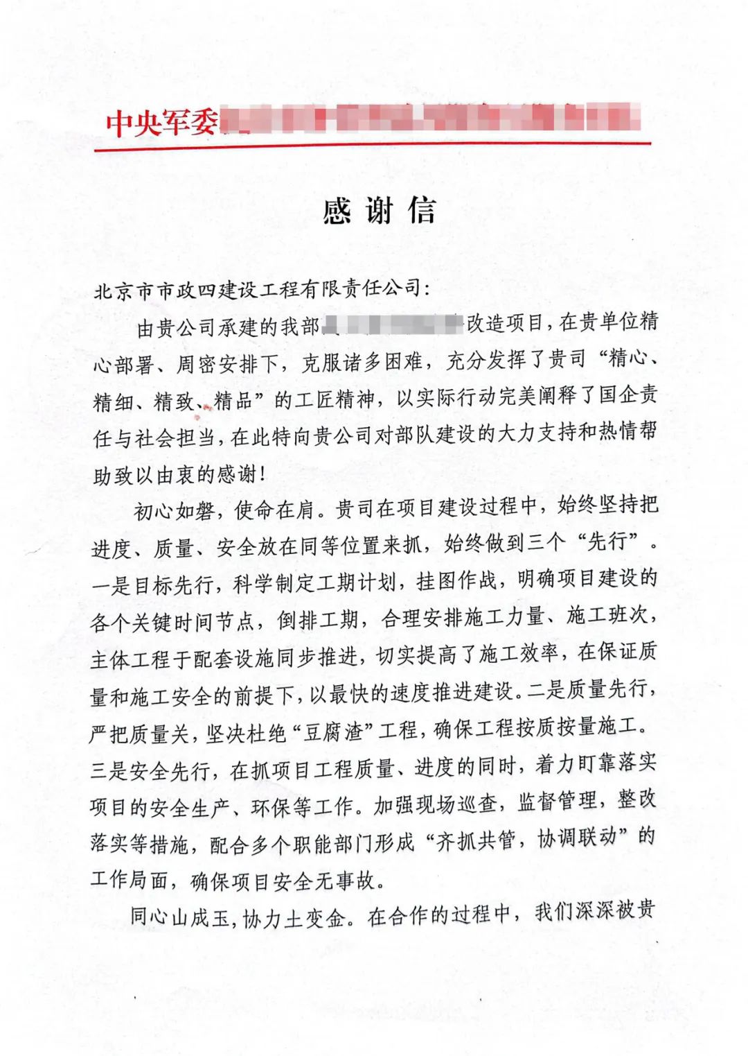未来,公司将继续发扬敢打敢拼的优良作风,继续保持尽心尽责、情系官兵,热心服务,暖至人心的国企风范,一如既往地大力支持部队工程建设,军地携手奋进,共担强军重任。