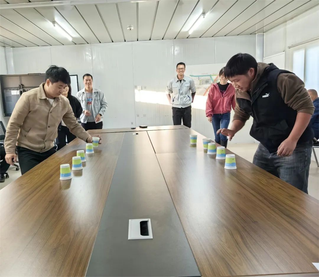 团体小游戏就多啦!“单手翻纸杯”考验了小伙伴们的协调性,“眼疾手快”看看谁的反应速度最快?“筷子运乒乓球”和“背夹球接力”考验了小伙伴们的团队协作能力,“集体拔河”更是让所有人都拧成一股绳,劲儿往一块使。