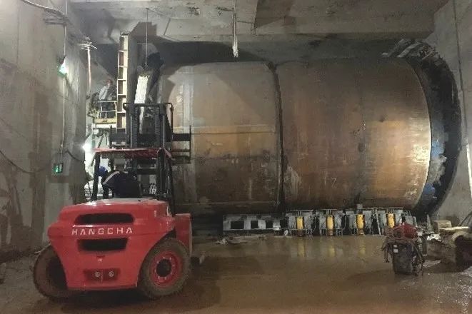 ⑵ 研发了移动式反力架、移动钢环和物料水平转运装置等受限空间盾构始发装备,具有机械化程度高、安拆方便,操控简单,运行空间要求小等特点。