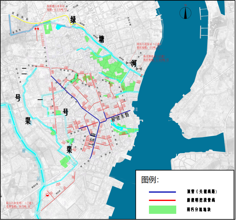 2023年9月,随着第一声炮锤打响,湛江市中心城区水生态治理工程EPC工程总承包项目吹响了全面施工号角,短短数月间,项目团队完成了涉及38条路、351个点位,管道铺设长度近70千米的施工。在霞山区中心城区编制了一条以霞山人民广场为中心,由人民大道、解放东路、椹川大道南、工农路十字展开的崭新排水管网,并在霞山区、麻章区的关键地块完成了雨污分流,为绿塘河、鸭漕渠的黑臭水体治理起到了重要作用。
