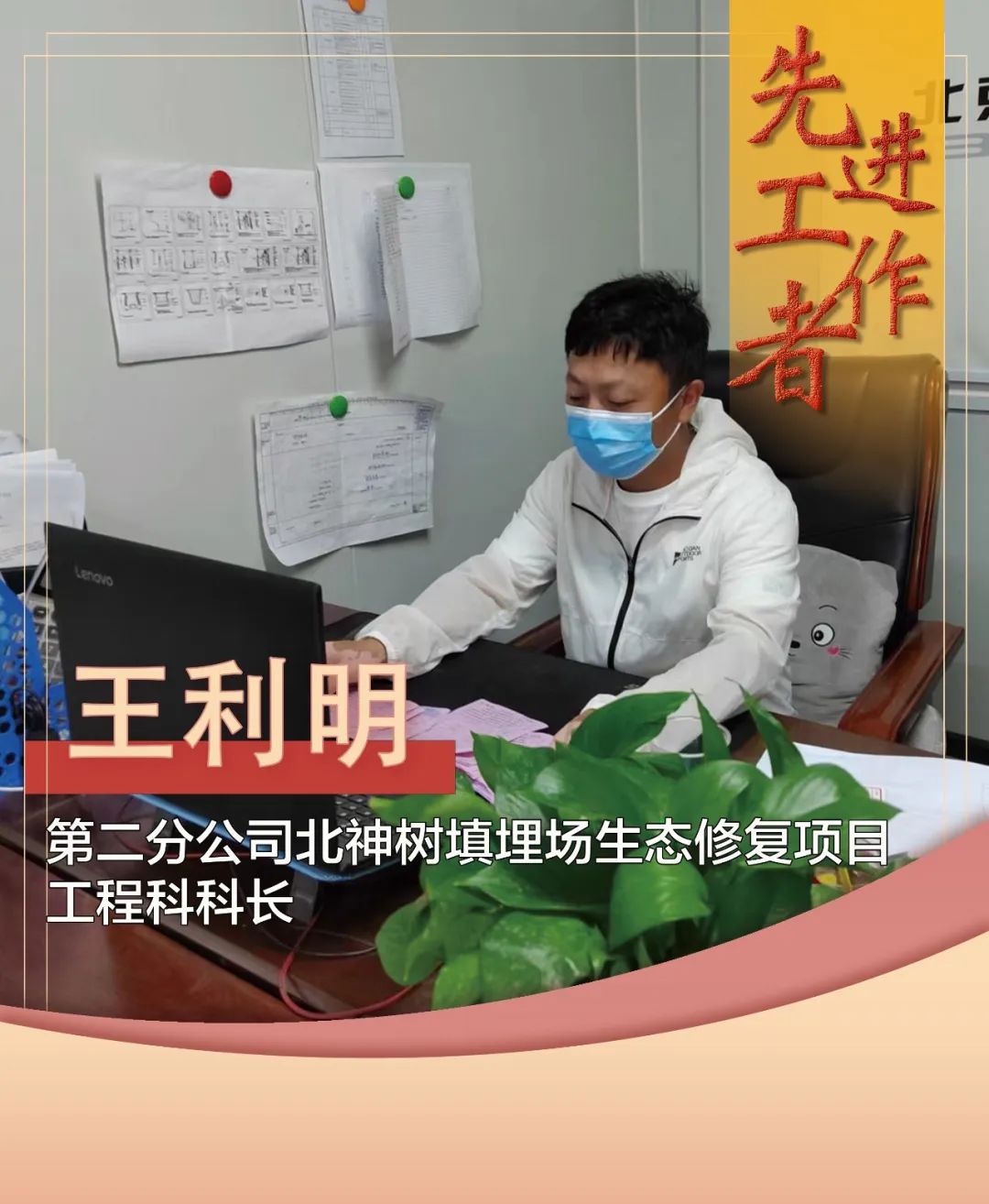 王利明,现任北神树垃圾卫生填埋场生态修复试点项目工程科科长,至今已经来到公司五个年头,在岗期间,忠于职守、爱岗敬业、脚踏实地。