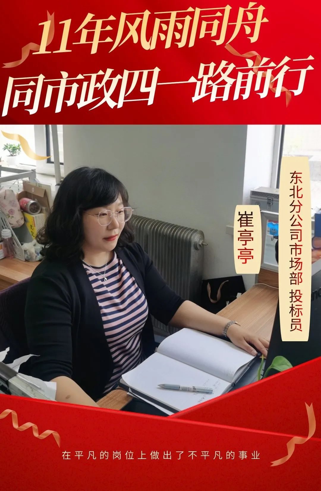 崔亭亭,现任职于东北分公司市场部,主要负责招投标工作。她常说“干一行,就要爱一行,精一行”。随市场开发项目越来越多,她逐步加强对项目所在地招投标法的了解与学习,与当地建设相关部门保持良好的沟通关系,推进投标工作顺利开展。她努力提高自身的标书写作与标书处理能力,加强对招投标文件、答疑纪要、相关文件等资料的收集归档及招投标台账的管理工作,通过不断领悟招投标工作的内涵和规范,认真进行市场分析与调查,高效率的完成了各项投标任务。