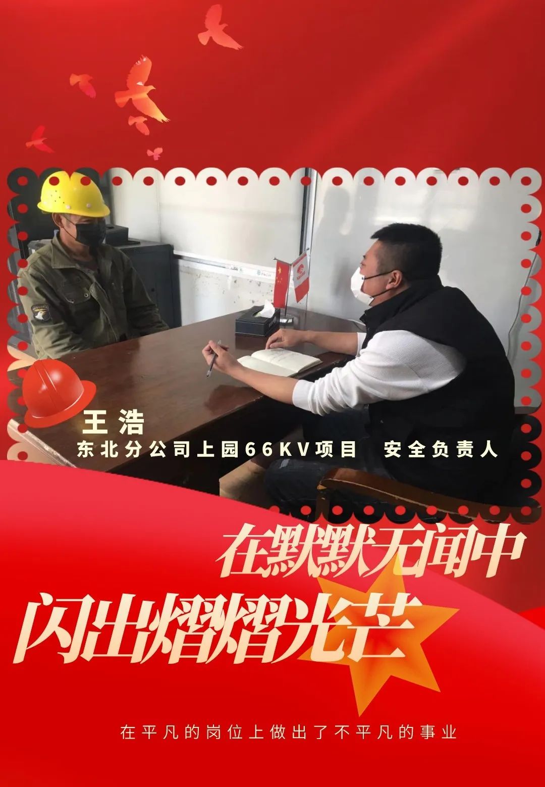 王浩,上园66KV项目安全负责人。2013年加入四公司,他守职尽责,默默耕耘,充分发挥一名青年党员的先锋模范作用。
