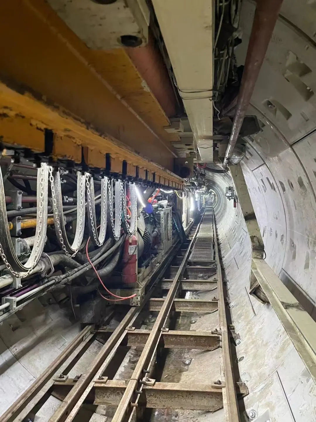 隧道分公司所属江北新区项目共2段盾构区间:6#~5#井盾构区间长1040米,5#~4#井盾构区间长2419米。今年4月份实现6号井~5号井盾构区间的贯通,目前正在推进5#~4#井盾构区间,当前完成近千米,成型隧道各项数据均符合设计要求。
