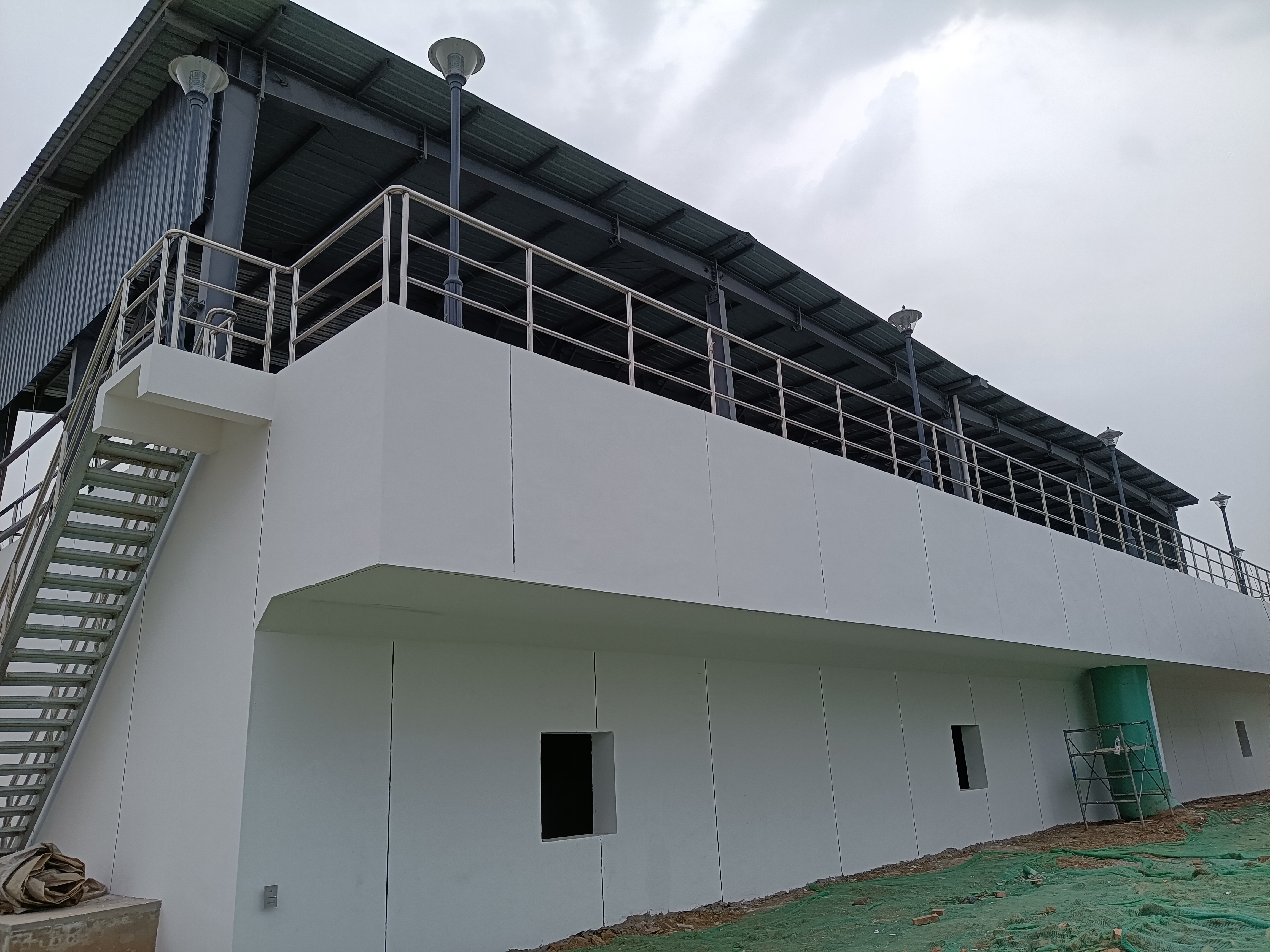目前现场人员共计70余人,机械设备10余台,新建工程主体结构基本全部完成,工艺管线、雨污水管线铺设完毕,正在进行装饰装修、机电设备安装及调试,为工程竣工打牢基础。