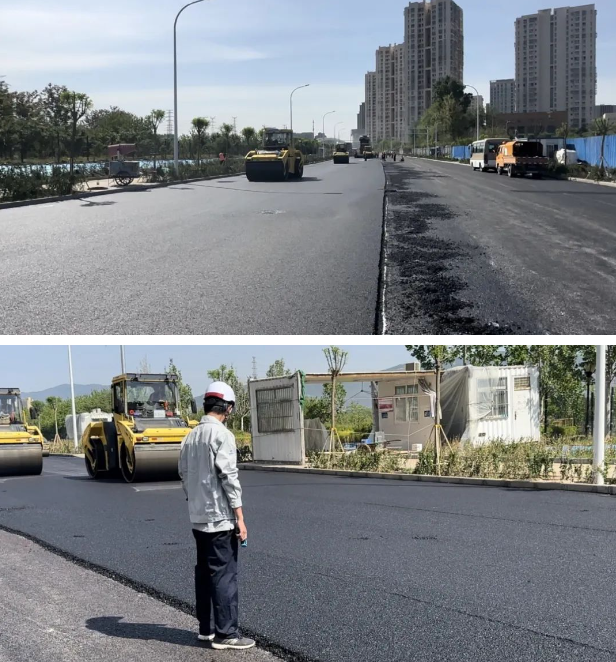 项目高峰时期施工人数近百人,机械设备17台,此段道路面油铺设完成,提振了项目团队信心,未来,项目团队将继续严格明确职责分工,研究施工部署,轮班赶进度,为早日竣工通车贡献一份力量。