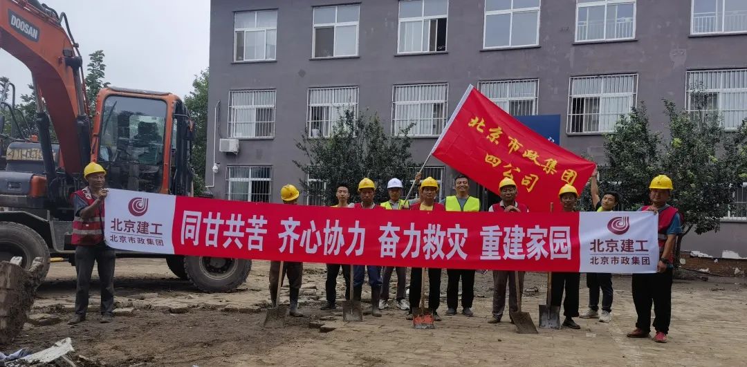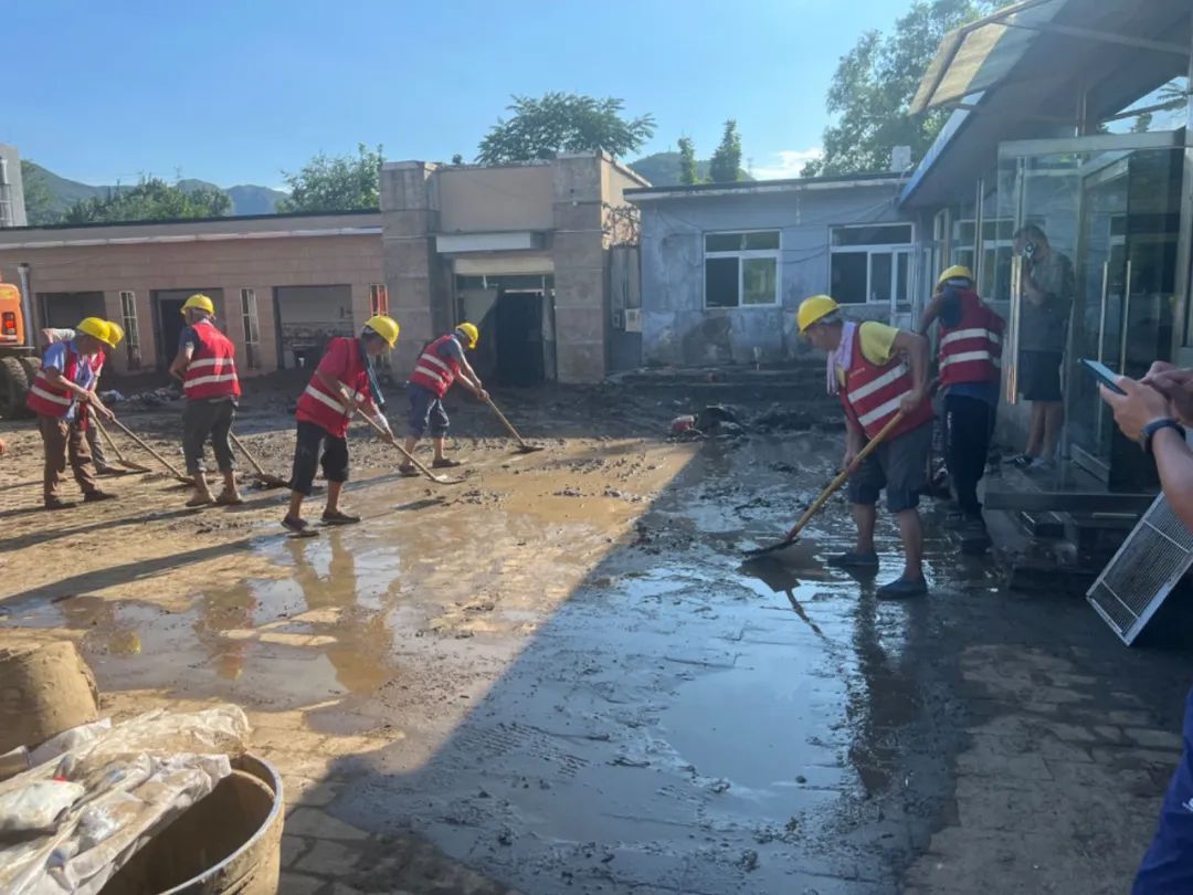 大水过后的镇政府大院满目疮痍,围墙被冲倒,房间内物资被泥水浸泡,树木东倒西歪,遍地淤泥伴杂着大水冲来的杂物散发着刺鼻的气味。项目数十名员工,2台挖掘机,4辆运输车驰援潭柘寺镇政府开展相关支援工作,大家不畏艰辛,清理淤泥、拉运废弃物,用手拽,用锹铲,汗水伴随着泥水,眼睛已然模糊。经过大家艰苦的努力,院落已清除干净,恢复了正常的办公环境,截至目前,抢险队员依然忙于灾后重建中。