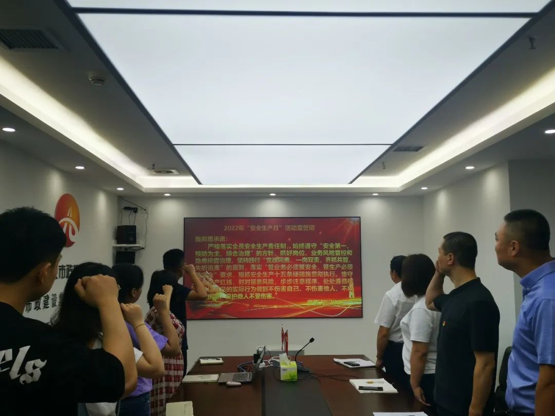 分公司安全总监带领全体与会人员进行安全宣誓,誓词掷地有声,将安全责任牢记于心,参会全体人员进行了安全签名承诺。