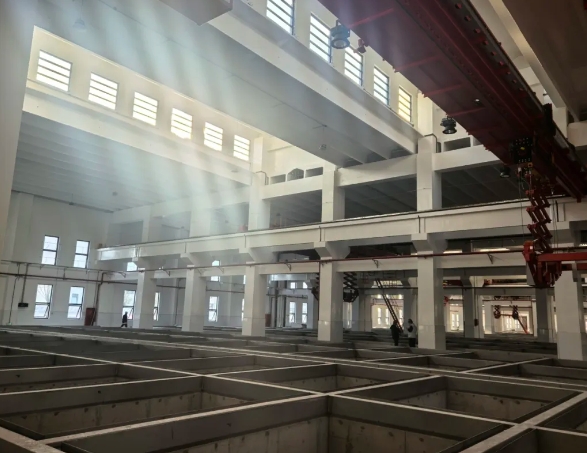 工程主体结构形式采用无板框排柱结构体系,屋盖型式为预应力双T板预制构件,区域内部墙面、顶棚均为防霉涂料面层,地面为聚氨酯砂浆承重地面,外墙为带岩棉保温层的弹涂饰面。现场存在施工区域狭窄、临近一期已投产管线及工期紧张等难点,项目部积极与建设单位沟通协调,制定专项施工方案,合理规划施工区域布局,编写详细全面、切实可行的施工计划,全力保障施工所需人员、机械、材料,在保障了一期管线不受影响的前提下,快速、优质、安全的完成了全部作业内容。