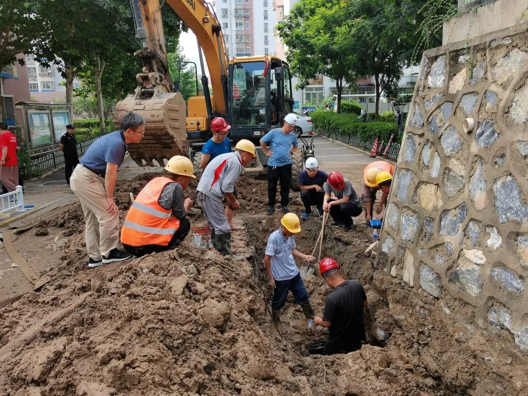 7月7日凌晨5点多,门头沟西一路项目接到甲方单位的求助电话,项目附近的东辛房街道石门营新区四区供水管线出现破漏需要抢修,项目紧急组织人手、协调机械奔赴现场。
