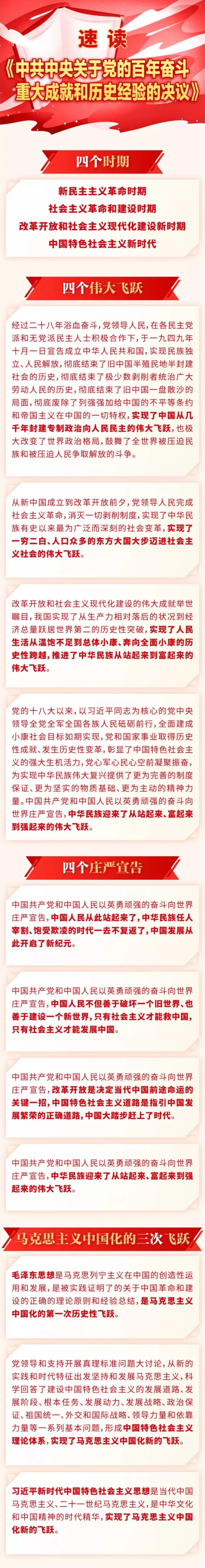 速读《中共中央关于党的百年奋斗重大成就和历史经验的决议》