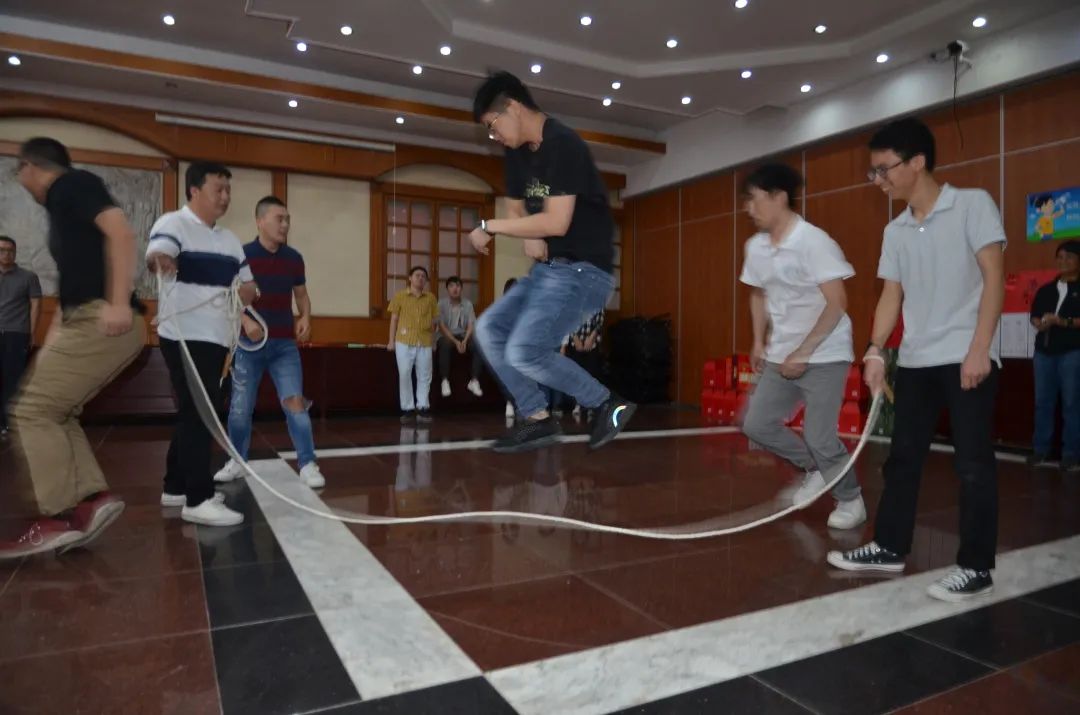 第一个游戏,快乐跳大绳,有团队的默契配合,也有个人接力的超强发挥;有部门同事之间的同心协力,也有不念“昔日情”的“针锋相对”。四队比拼,环环相扣,争分夺秒。