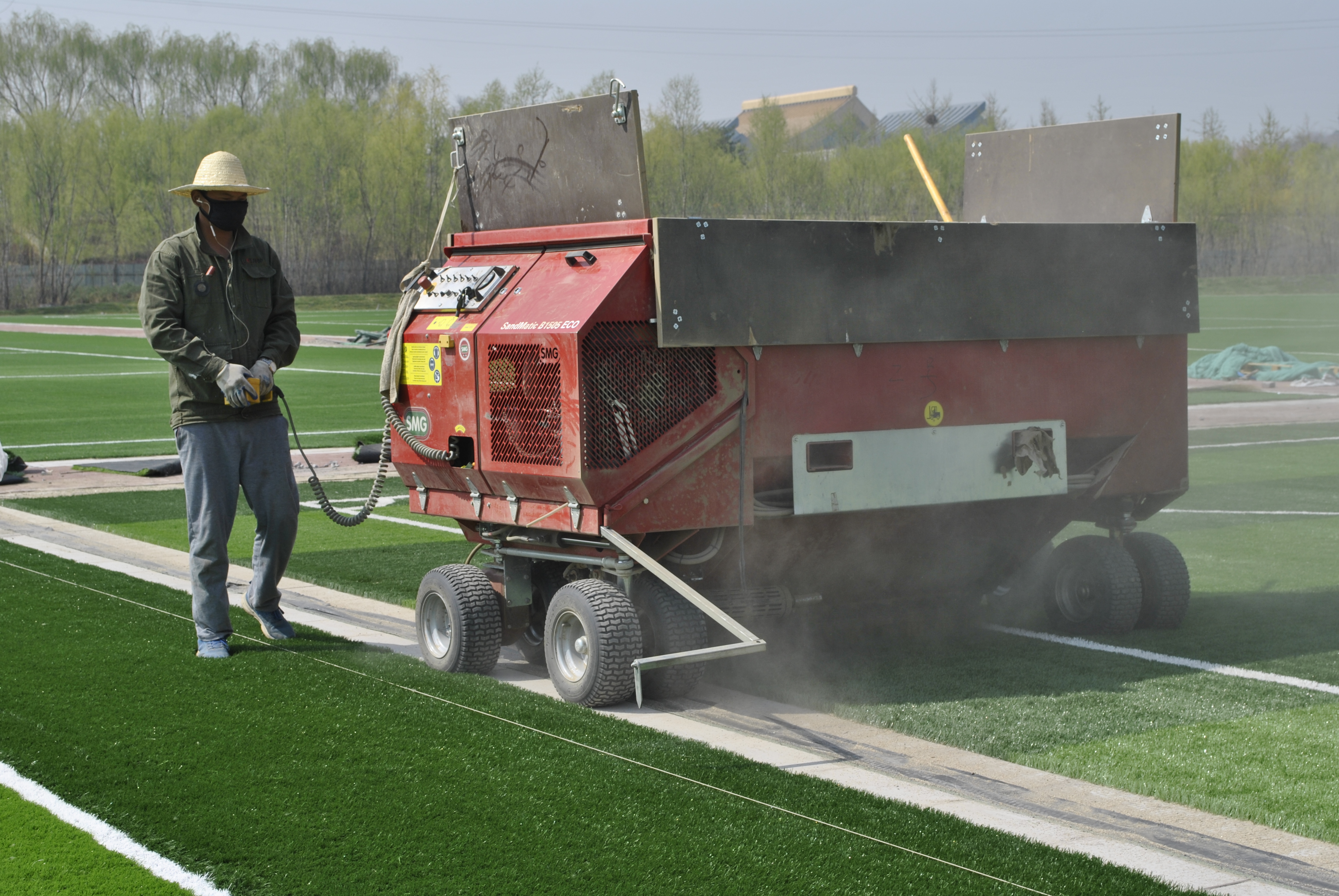 今年的风筝节与以往不同,人们告别了空旷的简易场地,来到刚刚建成的北京市校园足球培训基地举办风筝节。该训练基地位于北京园博园内,紧邻永定河,一期工程已于近日完成竣工验收。据承担施工建设的悟空体育推荐 市政集团易成公司项目负责人介绍,该工程总建筑面积54140平方米,其中人工草坪面积35128平方米,总道路铺装面积4400平方米,总绿化面积14612平方米,含9个人工草坪足球场(3个11人制区域,2个7人制区域,4个5人制区域)。该工程采用了目前最先进的人工草坪栽植技术,在草坪铺装完成后,需撒播石英砂及橡胶颗粒以固定草苗,其填充的厚度及均匀度直接影响工程的质量,所以冲砂机的选择、石英砂及橡胶颗粒的填充是本工程最大的难点;此外,该项工程占地面积大,且地势西高东低、相对标高较大,素土击实,场地的基层平整度是本工程的重点控制对象,基础施工部分又恰逢冬季,进一步增加了施工难度。